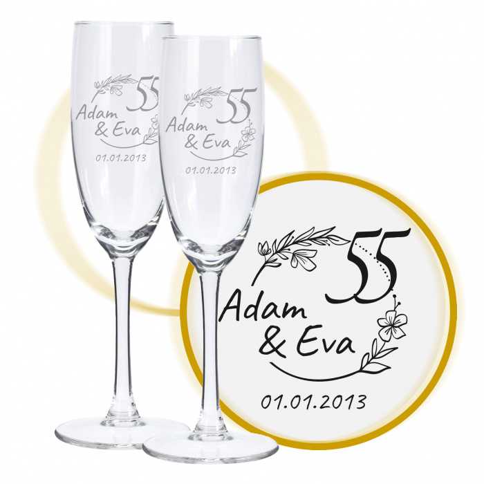 Sektglas mit Gravur zum 55. Hochzeitstag, Blütenträume