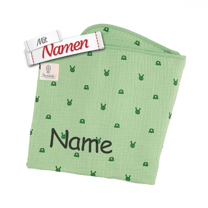 Hochwertige Sterntaler “Stay true to nature” Musselin Schmusedecke und Kuscheldecke in 120x120 cm personalisiert mit Namen / bestickt. Decke für Babys, Kleinkind und Kinder.