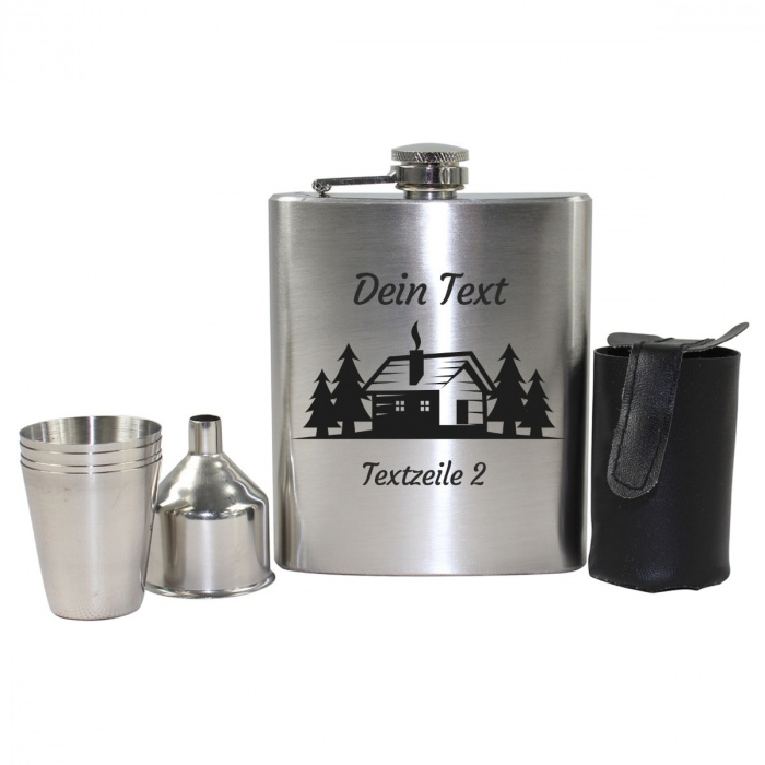 Edelstahl Flachmann mit Gravur, Text Name Motiv personalisierbar